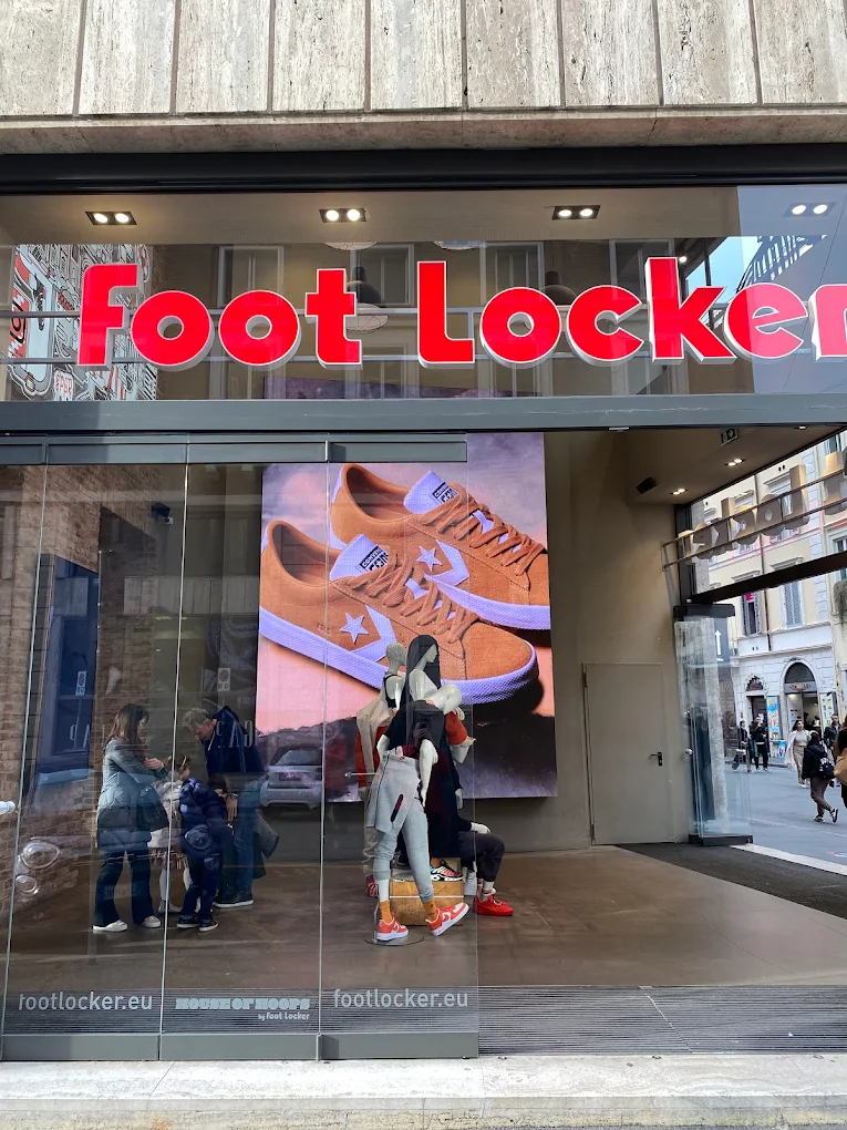 Sistema cementizio autolivellante decorativo a indurimento ultra-rapido per il punto vendita Foot Locker di via del Corso a Roma.