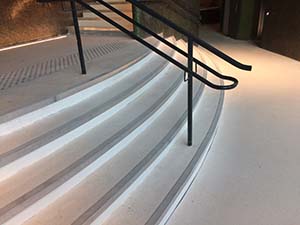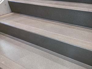 Un’altra soluzione che abbiamo proposto per le scale di una grande catena di negozi sportivi e che è stata scelta, sono i gradini prefabbricati con finitura Prima Polishing Fast System, compresa scanalatura antiscivolo