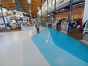Spesso grazie alla resina abbiamo effettuato importanti interventi di restyling, come in questo caso presso il Centro Commerciale Coop Livorno. Qui in alcune aree, sullo stesso livello dei rivestimenti in resina, abbiamo posato un rivestimento in PVC effetto legno rovere, inserendo profili a pavimento tra i diversi tipi di pavimentazione. Un effetto cromatico molto spiccato, ma altrettanto resistente e ad alte prestazioni.