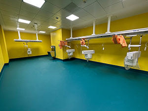 Per il rivestimento delle pareti interne della struttura ospedaliera abbiamo applicato MasterTop WS100PU specifico per “pavimentazioni verticali” continue a finitura liscia.