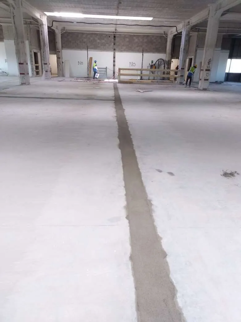 Oltre alla costruzione di nuovi massetti e pavimentazioni industriali con finitura a spolvero di spessore medio di 12 cm, ci stiamo occupando del ripristino di quelle già esistenti, riqualificando anche i giunti e in alcuni punti della posa di materassini anticalpestio per l‘isolamento acustico dei sottofondi.
