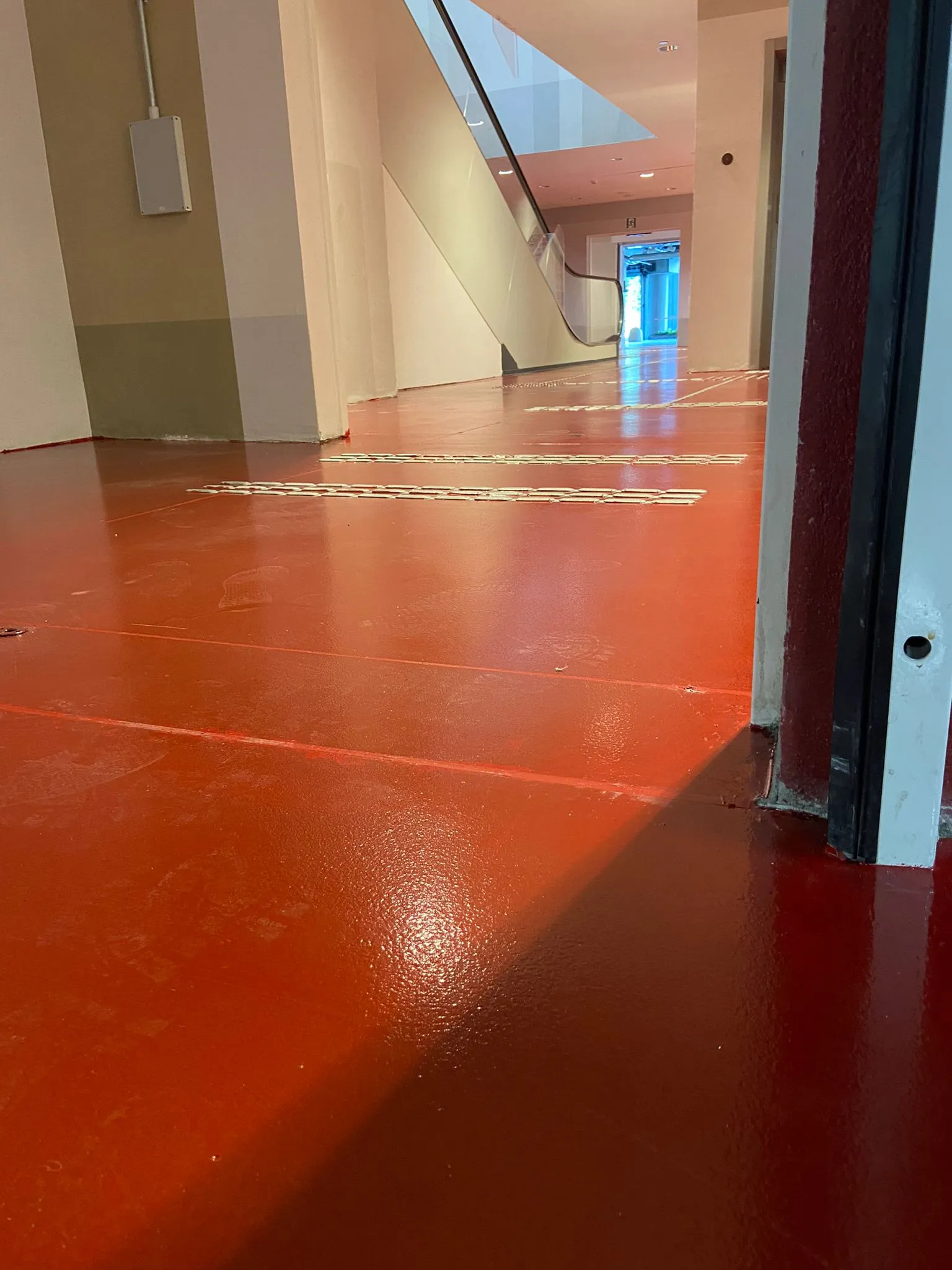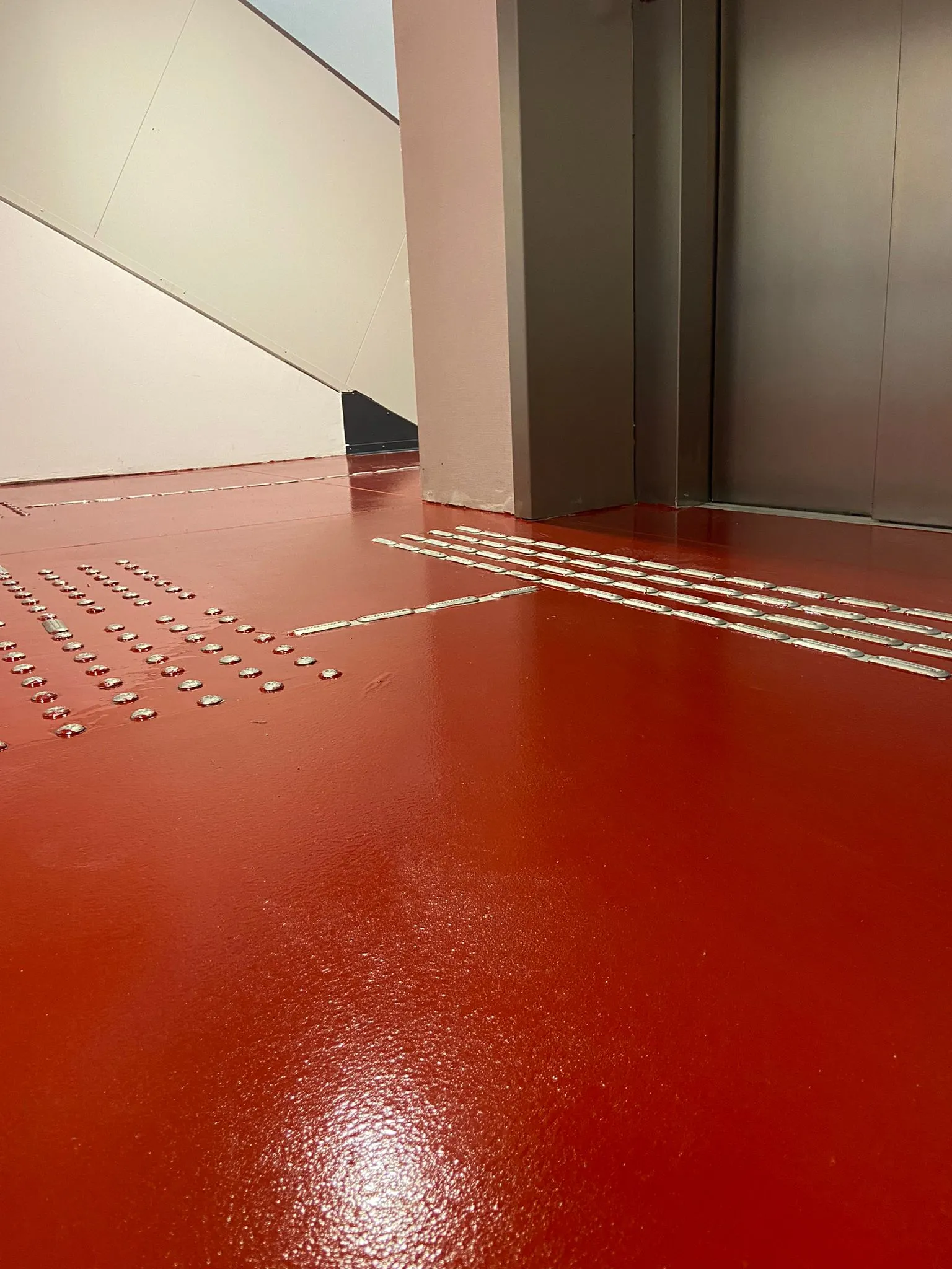 Per le pavimentazioni delle lobby abbiamo utilizzato un sistema epossidico di verniciatura con effetto liscio e monocromatico in grado di conferire al supporto caratteristiche antiolio e antipolvere, altamente resistente all’usura causata dal passaggio pedonale.