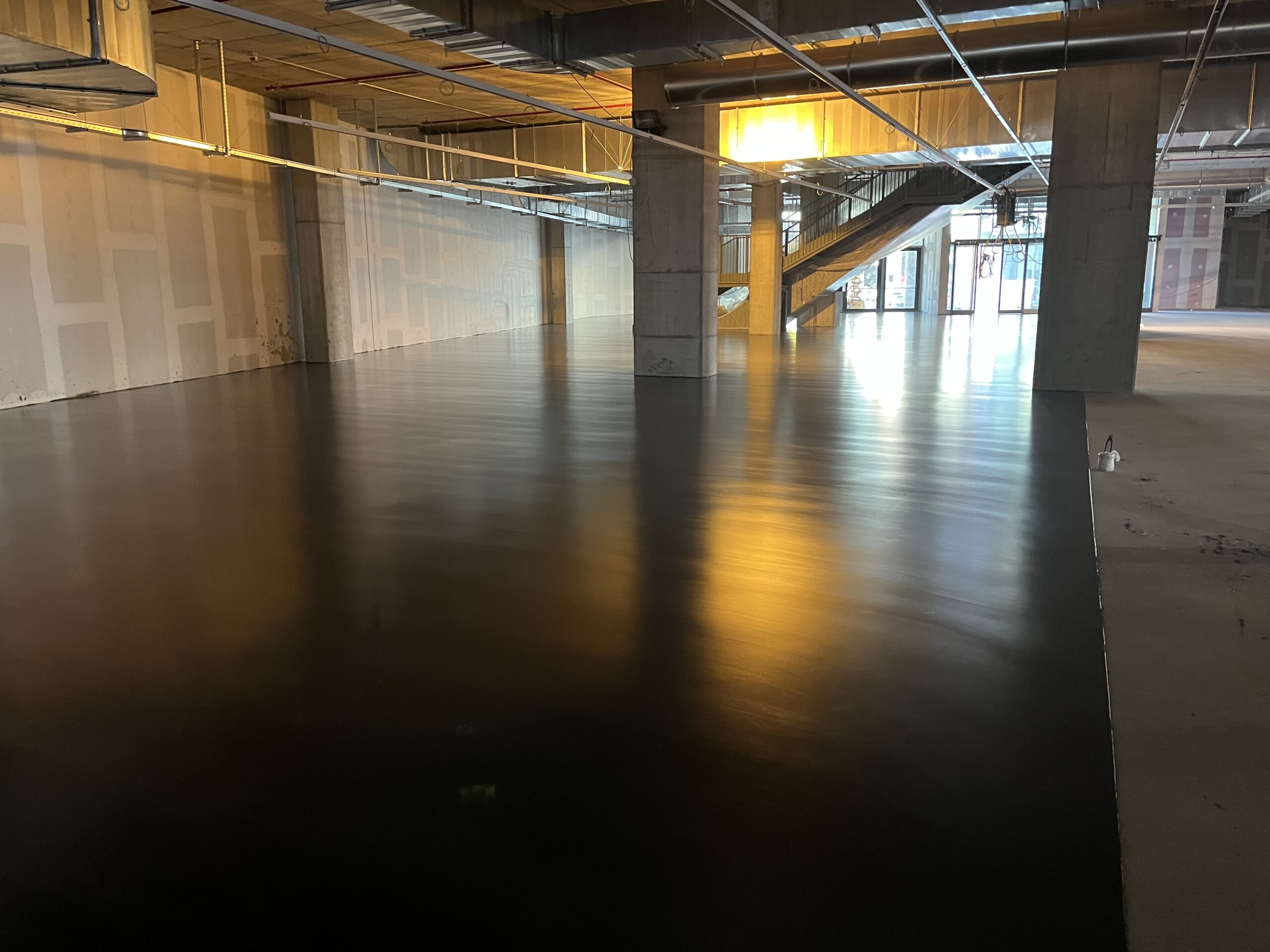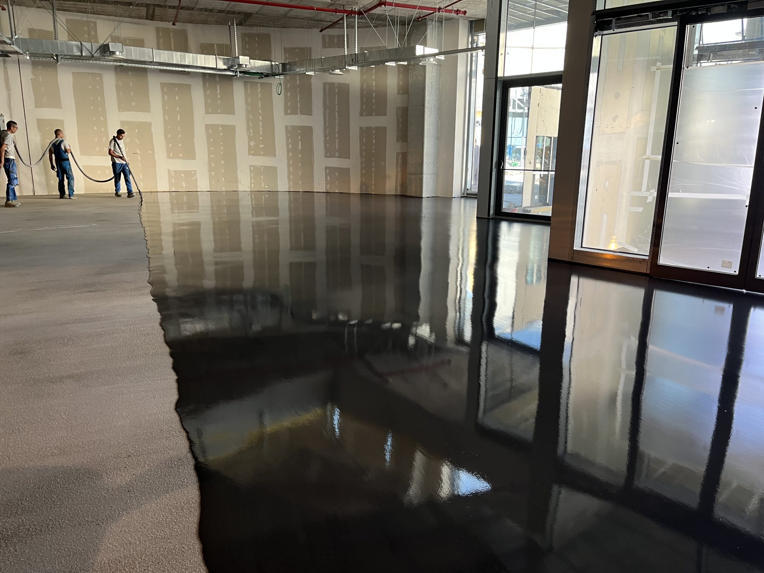 Abbiamo completato la pavimentazione con il sistema Ultratop HUF4 nella tonalità grigio scuro specificata da Decathlon, garantendo coerenza estetica con il layout dello store e conformità totale al capitolato tecnico.