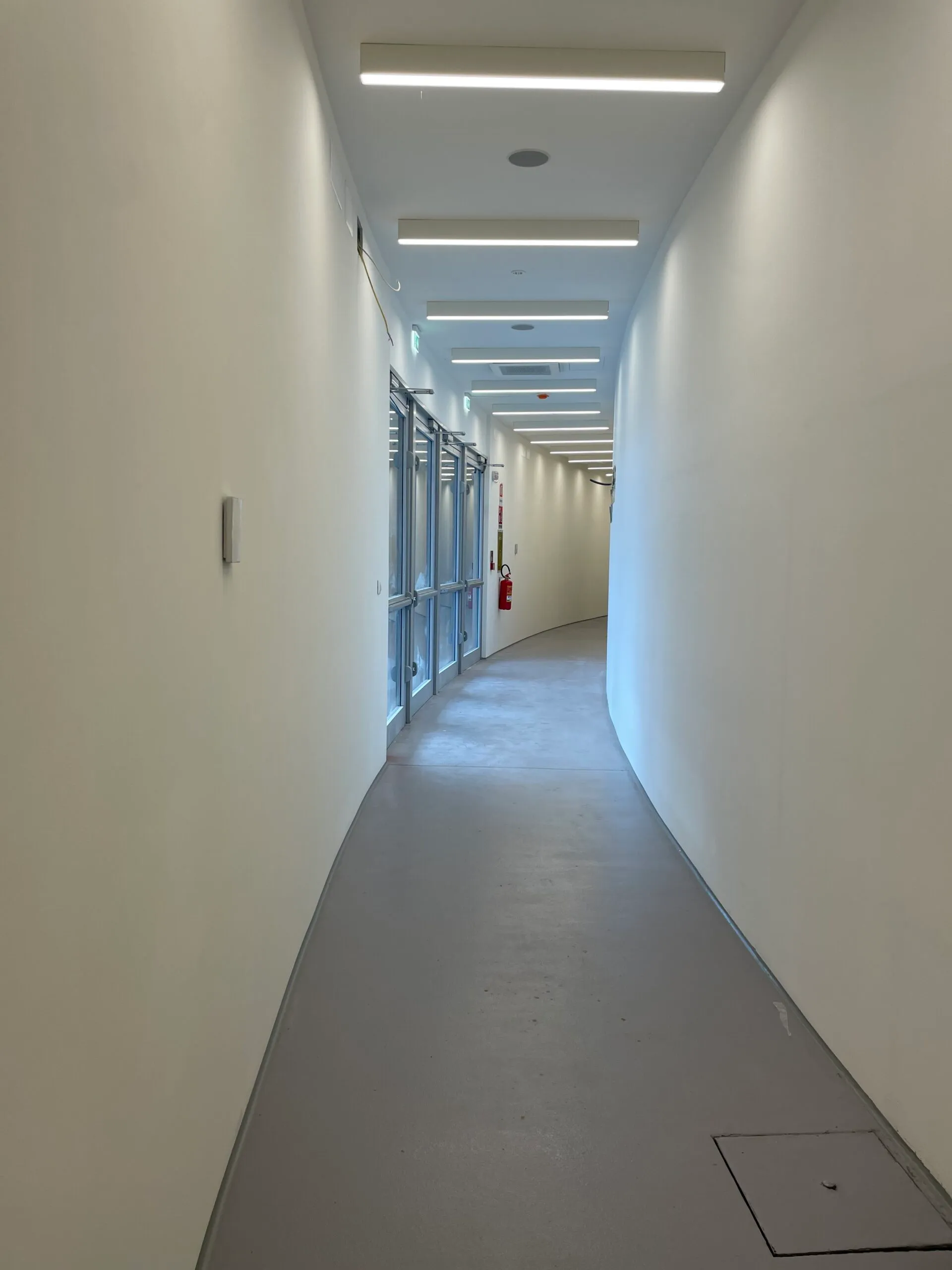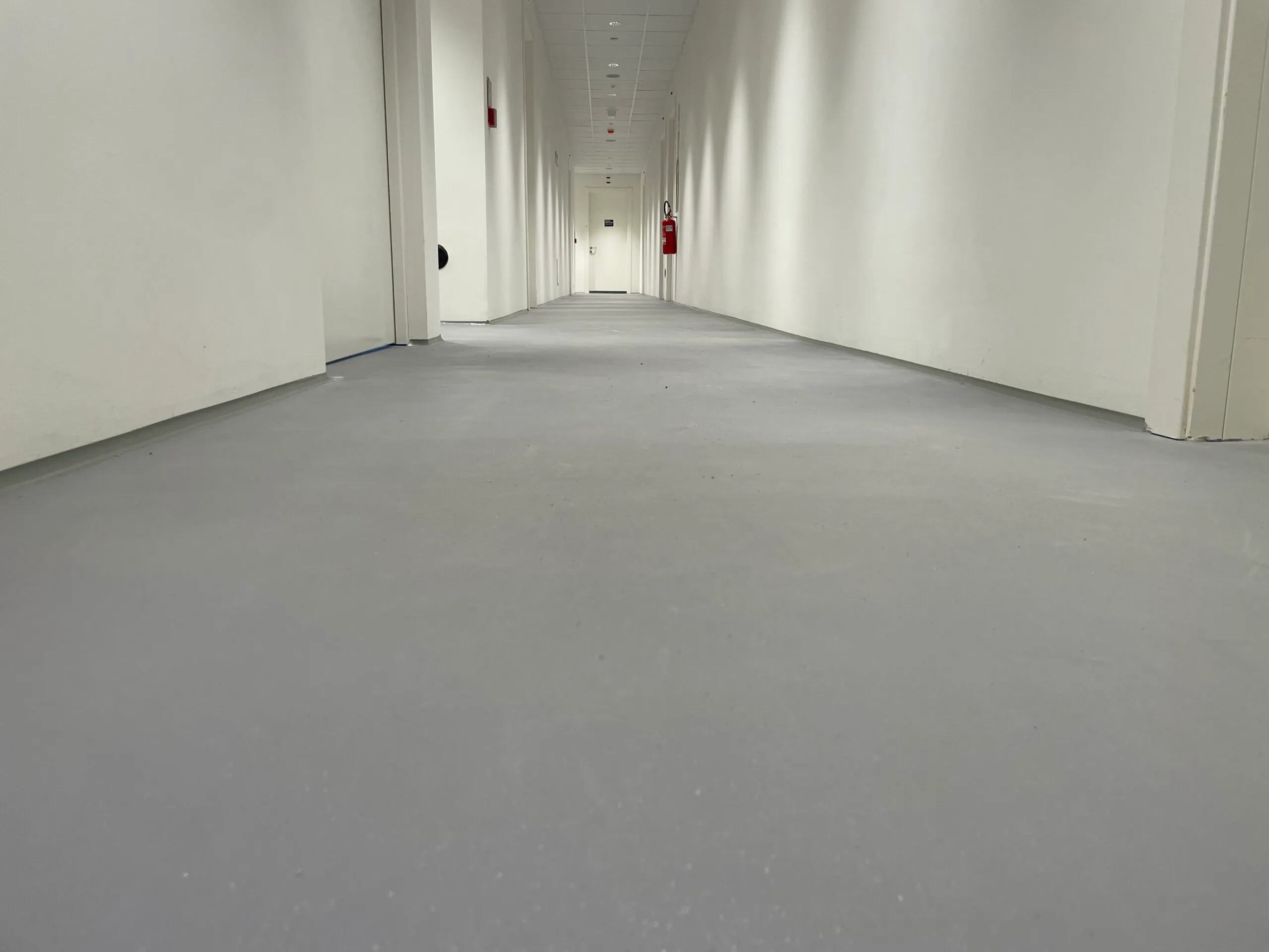 Dopo la realizzazione dei pavimenti in calcestruzzo per oltre 10.000 mq, ci siamo occupati della stesura dei pavimenti in resina in multistrato poliuretanico per tutte le aree adibite a corridoi e scale, spogliatoi e blocco bagni, incluso il rivestimento opaco delle pareti con resina poliuretanica.