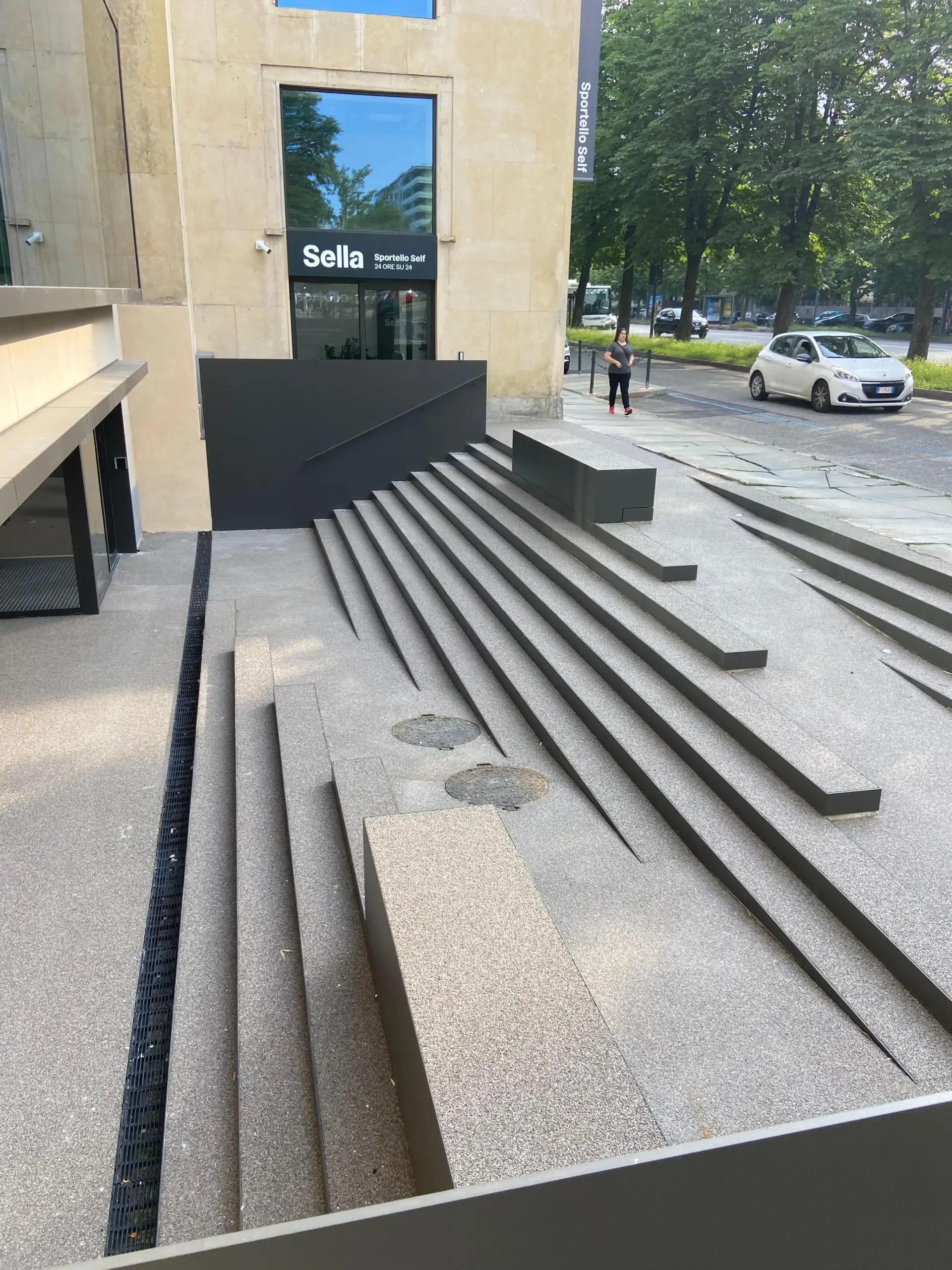 Nell’ambito del progetto di riqualifica dell'immobile che diverrà sede di Banca Sella a Torino, dopo le pavimentazioni interne in resina per gli ambienti uffici, stiamo riqualificando l'esterno.