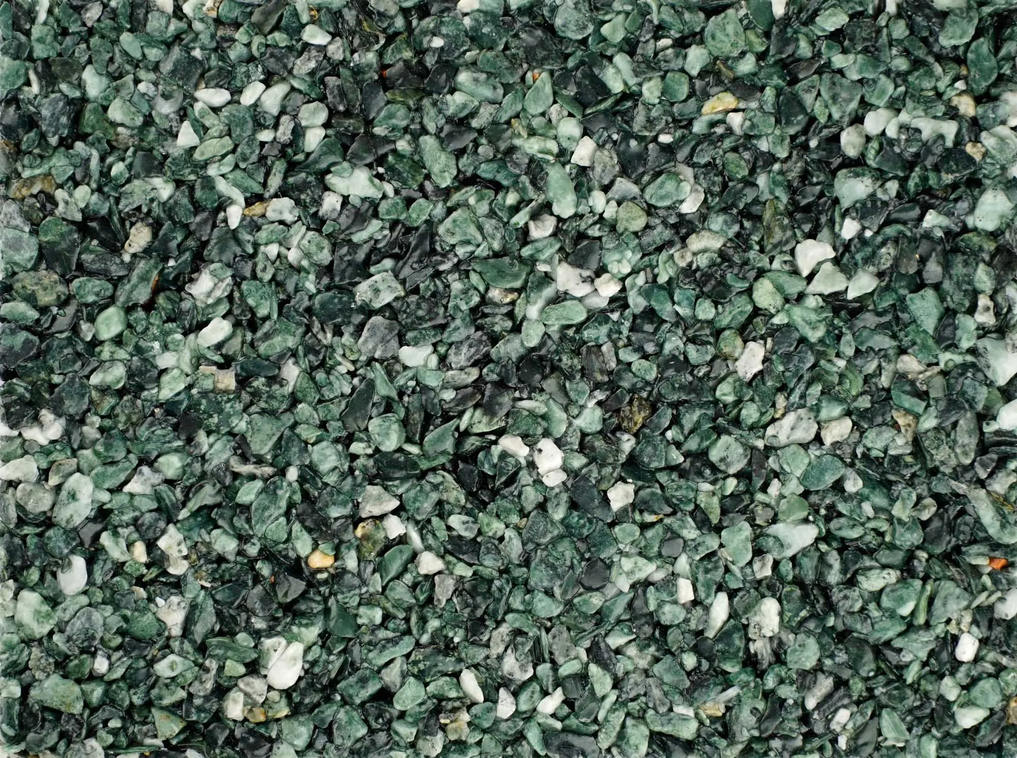 Per materiale e la gamma cromatica è stato utilizzato l’inerte naturale in granulato marmo Verde Alpi (qui di lato il campione).