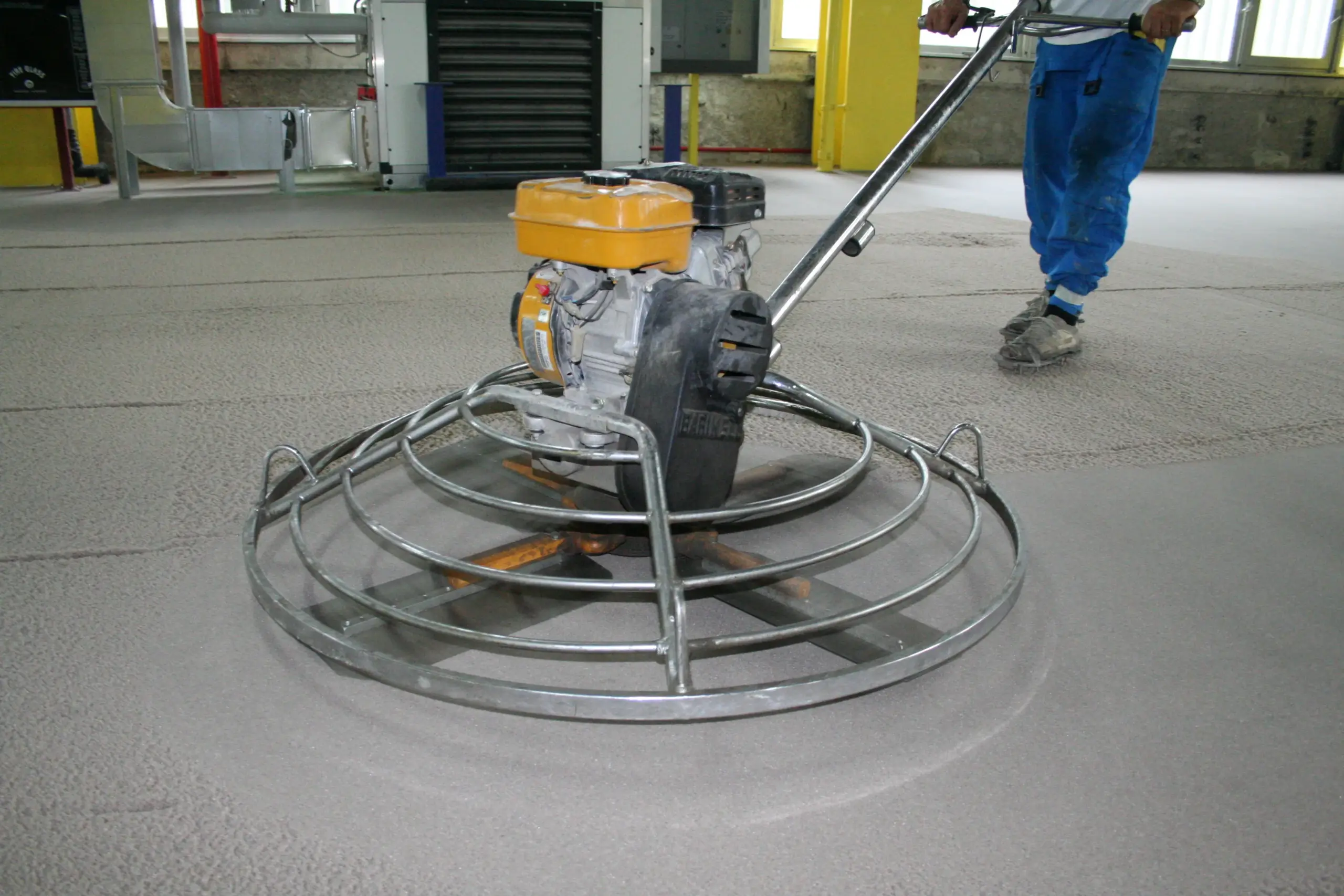Il calcestruzzo viene quindi gettato, livellato con regolo e vibratori per eliminare le bolle d’aria. La superficie viene lisciata manualmente con fratazzo o cazzuola in più passaggi successivi.
