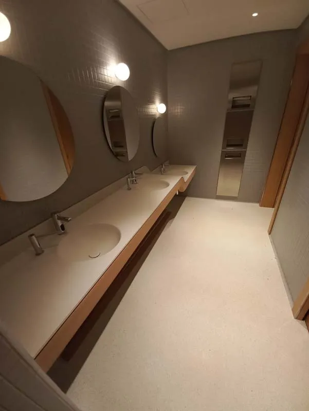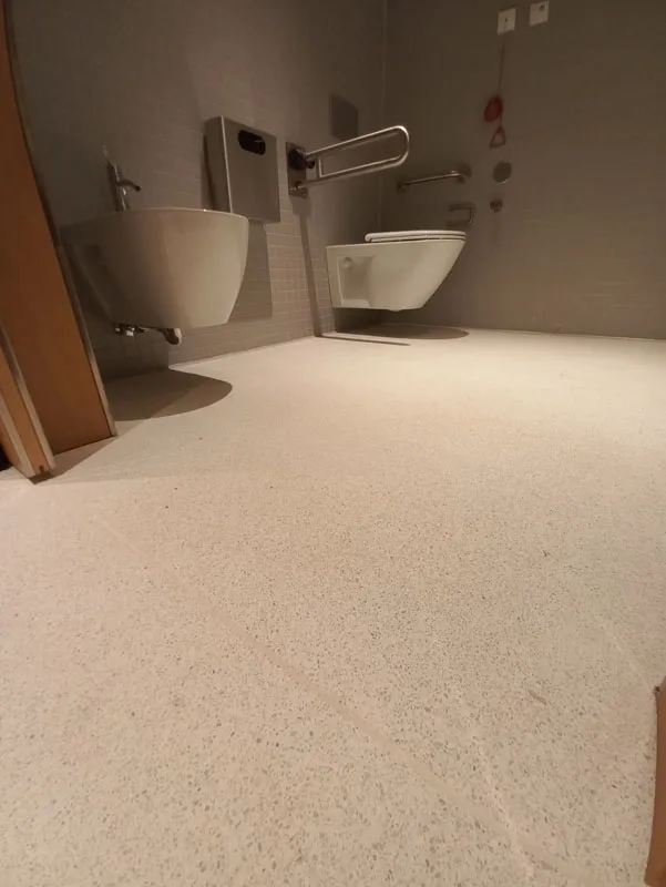 Requisito fondamentale per bagni e toilette è elevata sicurezza antiscivolo, massima igiene e resistenza alle macchie. Pavimentazioni continue per ambienti umidi con un numero limitato di giunti che permettono di mantenere l’impermeabilità delle superfici e una maggiore facilità di pulizia. Tra le soluzioni pavimentazioni tecniche in Terrazzo alla Veneziana, oppure i sistemi poliuretanici antibatterici, autolivellanti, per le pavimentazioni ad elevato comfort del settore ospedaliero.