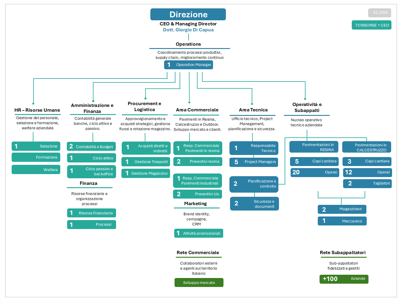 La struttura organizzativa di Prima Pavimenti Speciali Srl è il riflesso di oltre 40 anni di esperienza maturata nel settore delle pavimentazioni tecniche in resina e calcestruzzo.