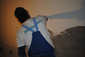 - stesura PRIMER SN a spatola i due mani con interposta rete in fibra di vetro MAPENET 150 e spolvero dello stesso ancora fresco con Sabbia al Quarzo 0,5