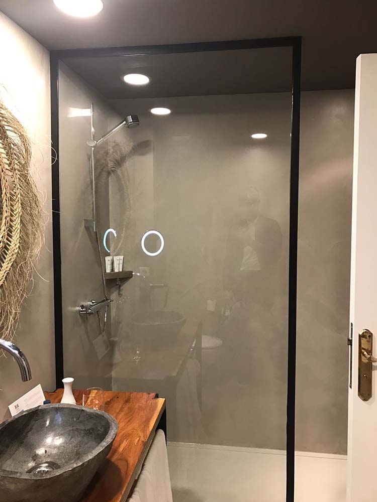 Le paste cementizie spatolabili offrono la possibilità di realizzare continuità materica e cromatica tra pavimento e parete per rinnovare supporti preesistenti in cemento, che presentano problemi di planarità, piccoli buchi o crepe, o su piastrelle già esistenti.
