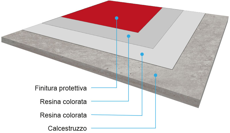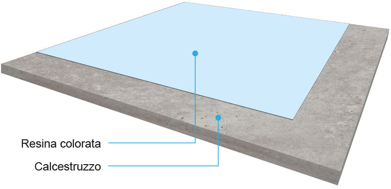 2. Rasatura con resina poliuretano cementizia colorata spolverata a rifiuto con quarzo sferoidale.
