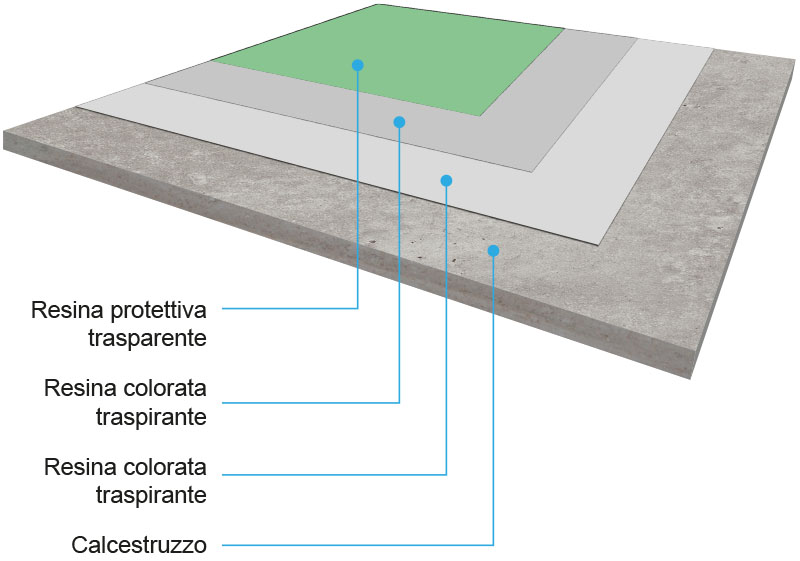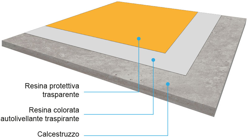 3. Applicazione di mano ad alto spessore con resina epossidica autolivellante traspirante tinta Ral.