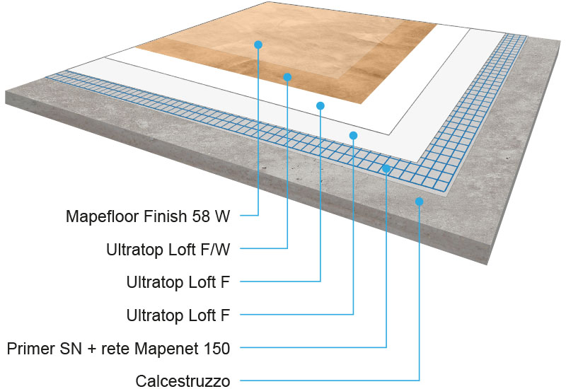 Ultratop Loft F è il rivestimento ideale per la realizzazione di pavimentazioni decorative e di rivestimenti a parete, dal marcato effetto materico, in ambienti interni. Questo formulato, per la facilità di impiego, per la sua versatilità e per la sua resistenza all’abrasione, è ideale per la realizzazione di pavimentazioni sottoposte ad intenso traffico pedonale come esercizi commerciali, negozi, ristoranti, hall, residenze private, caffetterie, hotel, sale espositive e, in generale, in tutti gli ambienti attinenti al settore decorativo dell’edilizia civile. La sua consistenza, il suo limitato spessore applicativo oltre alla possibilità di essere applicato anche in verticale e combinato con svariate gamme cromatiche, consentono un’infinita libertà creativa nella realizzazione di rivestimenti unici.