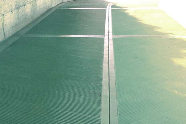 Sono realizzate stendendo sopra al calcestruzzo ancora fresco una malta a base di aggregati minerali, che corazza la superficie per conferirle alta resistenza meccanica e lavorandola poi con strumenti come dime, stadie e spatole per realizzare i solchi a lisca di pesce. L’impiego di materiali di alta qualità, rendono la rampa solida e performante nel tempo, rispetto al frequente passaggio di mezzi di trasporto e a fenomeni di gelo-disgelo.